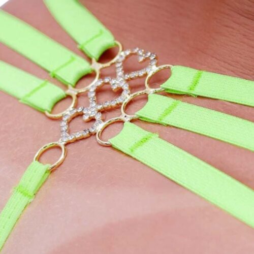 • Visual Impactante: O neon e o brilho dos strass garantem que você seja o centro das atenções, perfeito para surpreender e encantar.
