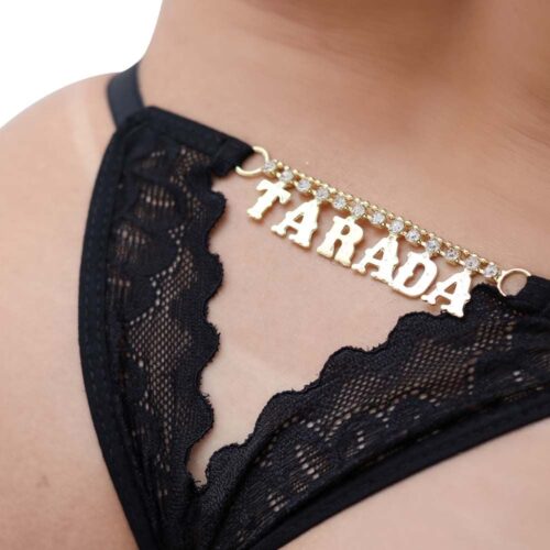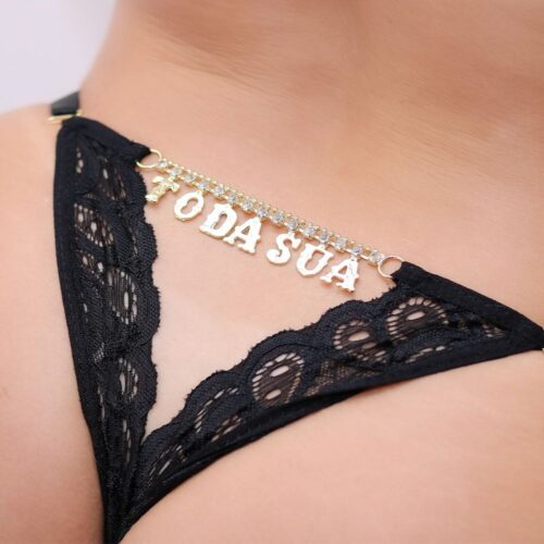 Elaborada em renda de alta qualidade na cor preta, a Calcinha Fio Dental Gis destaca-se pelo seu design sofisticado. A renda delicada, com detalhes precisos, envolve suavemente, oferecendo não apenas beleza, mas também conforto excepcional. Na parte traseira, palavras provocantes são cuidadosamente adornadas com strass e metais brilhantes, capturando a luz e a atenção, garantindo um toque de luxo e exclusividade.