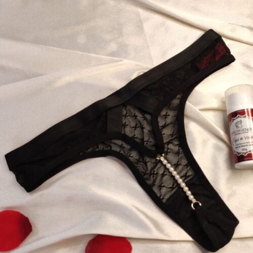 - Estilo: Calcinha preta com pérola estilo tailandesa