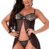 Além da camisola, o conjunto inclui uma calcinha estilo fio dental em harmonia com o design e tecido da camisola, oferecendo um conjunto completo para suas noites.