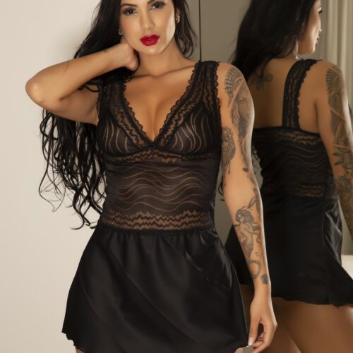 Transforme suas noites com a Camisola Preta em Renda e Cetim. Elegância e sedução em cada detalhe!
