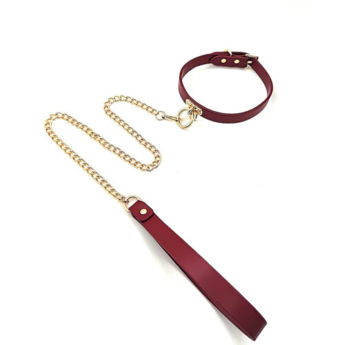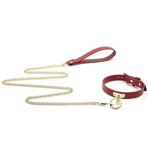 Coleira Bondage em Couro com Fecho em Metal e Corrente de Tração