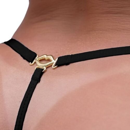 O sutiã, peça-chave deste conjunto, destaca-se pelo delicado detalhe de uma jóia cintilante posicionada estrategicamente entre os seios, capturando a luz e a atenção, garantindo um brilho todo especial em momentos íntimos. Ajustável e moldável, adapta-se perfeitamente ao seu corpo, proporcionando o suporte ideal sem abrir mão do conforto.