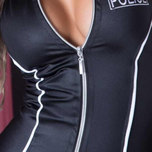 Peça de luxo, para dias que quer se sentir desejada e esquentar a relação, o ziper até a cintura, a abertura laterais nas pernas e a inscrição “police” dão asas para imaginar, seduzir e brincar na hora h, com algum acessório você ainda potencializar a relação, use a sua imaginação! Também cai super bem para uma festa a fantasia, se prepare para chamar a atenção e atrair olhares!