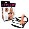 Esta cinta é composto por um pênis. Esta strap-on adapta-se à maioria dos tamanhos e é adequado para pessoas com uma vulva.