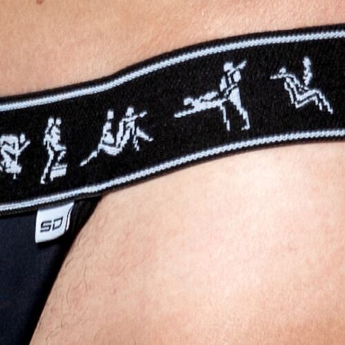Design ousado e erótico: O estilo Jockstrap, aliado ao elástico estampado Kama Sutra, é ideal para momentos de sedução.