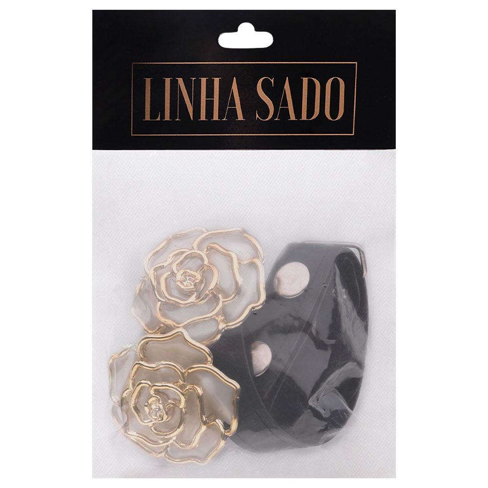 Kit coleira e perneira flor em couro sintético linha sado sexy fantasy