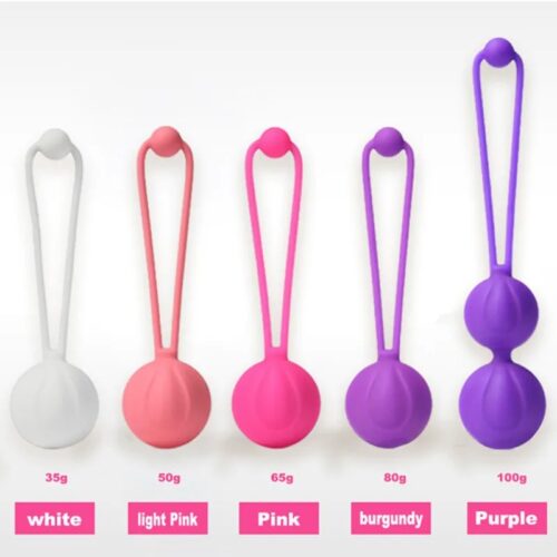 Kit de pompoarismo composto por um conjunto de 4 bolinhas e uma dupla, ambas com peso interno, revestidas por silicone de alta qualidade e extremamente macias para um contato suave com o corpo. Possuem alça na base para facilitar a remoção após a penetração.