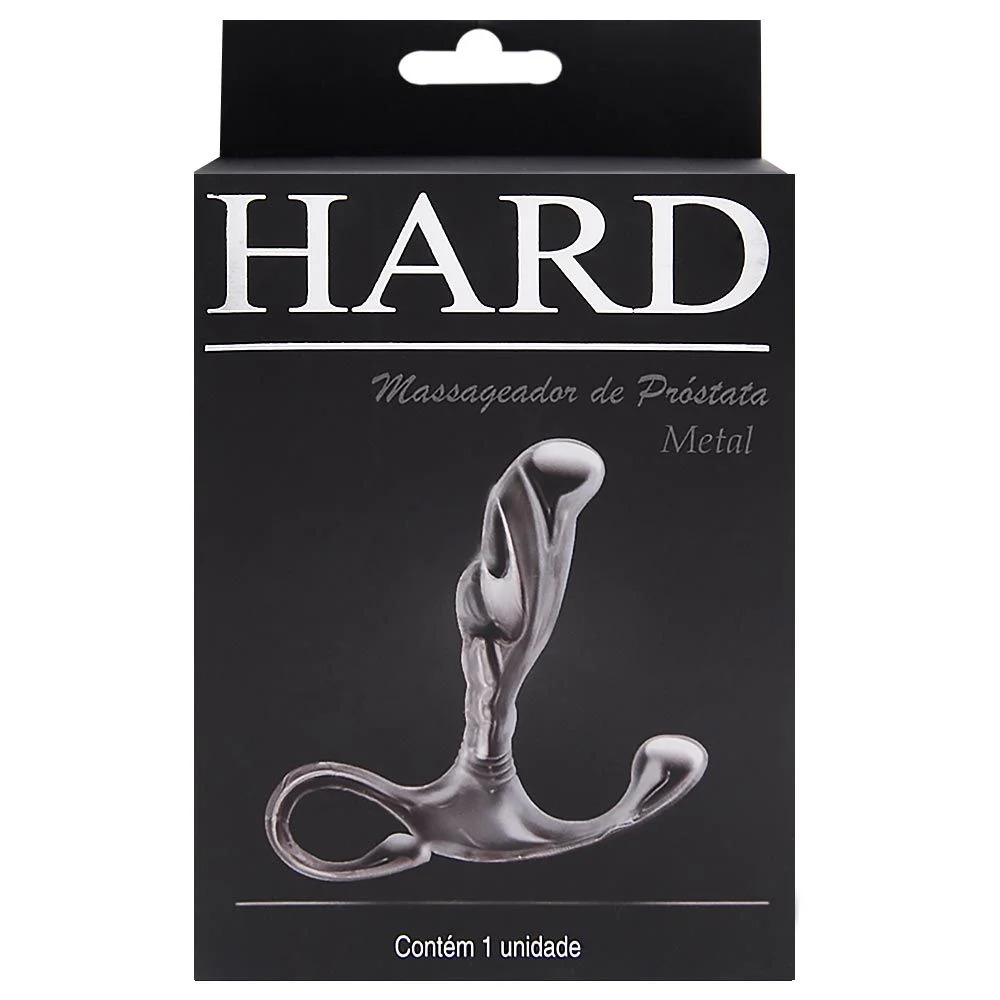 Massageador de próstata “hard” com formato ergonômico confeccionado em metal, desenvolvido para estimular a próstata e períneo com alça de segurança.