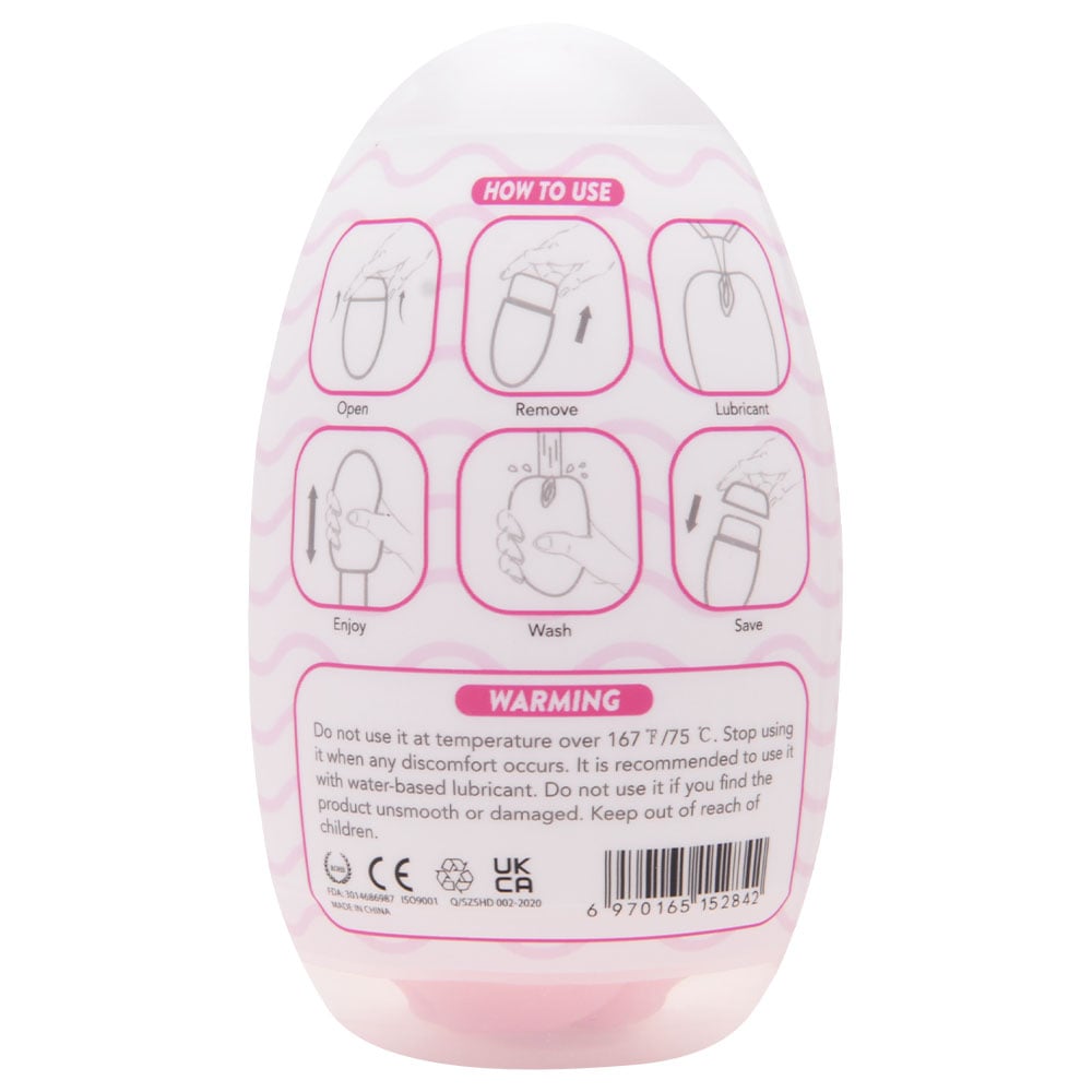 Para começar a usar o seu “egg”, abra o lacre lateral e remova o ovo da embalagem. Aplique uma quantidade adequada de lubrificante à base de água para garantir que o Magic Cat deslize suavemente sobre a pele. Caso não utilize lubrificante, o material não se esticará e não proporcionará a experiência prazerosa desejada. Encaixe o Magic Cat no pênis como se fosse uma touca elástica e estique-o até a base do membro. A masturbação pode ser realizada com as mãos sobre o produto. Após o uso, higienize-o com água corrente e, se necessário, use um sabonete neutro ou específico para Cyberskin. Deixe secar naturalmente e armazene na embalagem original.