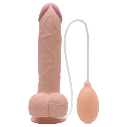 O pênis realístico, por meio de uma bomba que pode ser preenchida com líquido de sua preferência e manipulada no momento e do jeito que você quiser, imita uma ejaculação.