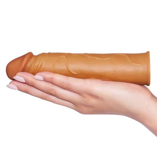Pleasure x-tender series – Capa peniana morena extensora com glande definida preenchida e veias salientes – 17 x 2,8 cm