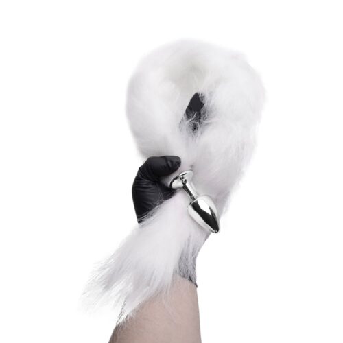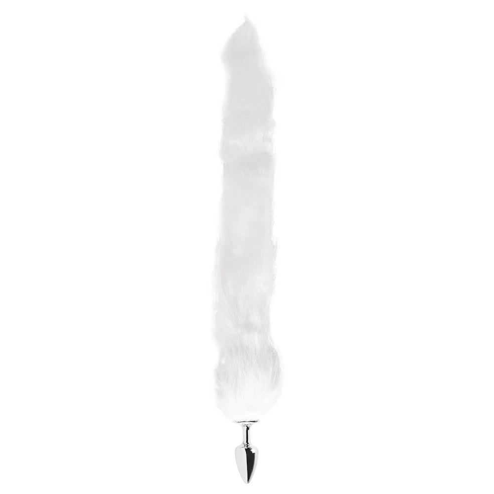 Plug Anal em Metal Cromado com Rabo Longo Branco – Hard: Realce suas Fantasias e Desfrute de Sensações Inesquecíveis