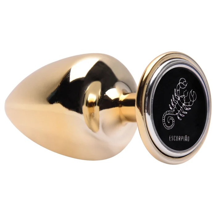 Plug M anal dourado signos em metal com pedra hard