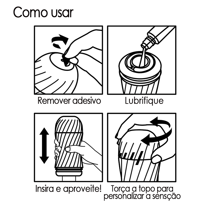 Adicione lubrificante e gire a parte superior para fazer pressão até que fique confortável para você.