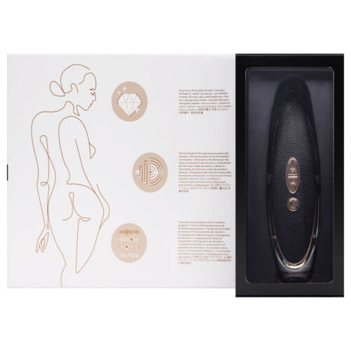 Satisfyer Luxury Prêt-à Porté é uma ventosa de alta qualidade, fabricada com materiais premium e da melhor qualidade, como alumínio escovado, couro fino, silicone e metais, para substituir o plástico.