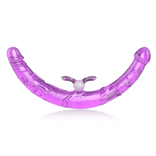Vibrador em forma de pênis com duas cabeças em gel muito flexível.